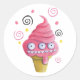 Sticker Rond Cône de crème glacée rose Monster