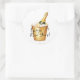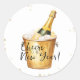 élégants et amusants, ces autocollants sont parfaits pour la fête du Nouvel An. Le design comprend des confettis d'or, une bouteille de champagne dans un seau d'or, et le texte "Bonjour à la nouvelle année !"