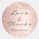 Un arrière - plan rose en or. Décoré de confettis. Personnalisez et ajoutez votre prénom. Avec le texte : Amour & Merci. Parfait pour les faveurs du parti.
