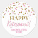 Happy retraite préférence étiquette autocollant avec motif confetti rose clair et or.