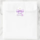 A white background. Decorated with a large lavender bow and a golden cross. Personalize and add the name.