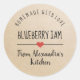 Autocollant rustique "fait maison avec amour" avec "confiture de bleuets" avec une police noire sur un arrière - plan en carton agrémenté d'un coeur rouge mignon. Customiser du texte.
