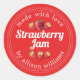 Autocollant fait maison rustique et moderne avec le texte fait avec amour, confiture de fraises et votre nom en écriture moderne blanche et typographie sur un fond rouge fraise avec une touche stylisée de fraises à l'aquarelle. Ajoutez simplement votre nom et le nom du produit à l'étiquette. Conçu exclusivement pour vous par Happy Dolphin Studio. Si vous avez besoin d'aide ou de produits assortis, veuillez nous contacter à happydolphinstudio@outlook.com.