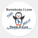 Les caractéristiques de conception un pingouin avec un ruban bleu d'espoir sur son ventre, et ses bras s'ouvrent au loin. Il indique que quelqu'un l'amour d'I ce beaucoup a besoin d'une conscience de hydrocéphalie de traitement.