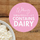 Sticker Rond Contains Dairy Allergy Warning Pink Bakery