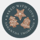 Autocollant personnalisé pour les boulangers et les cuisiniers qui aiment faire cuire/cuisiner et cadeau à d'autres, ou pour ceux qui le font professionnellement. Il y a une illustration de biscuits de vacances au milieu. Il y a un texte qui tourne en rond qui dit "cuit avec amour". Vous pouvez customiser ce produit en ajoutant votre propre nom ou nom commercial.