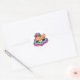 Sticker Rond Cool DJ Orange Cat with Headphones on Rainbow Clou