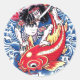 Sticker Rond Cool japonais Samurai Koi Carp tatouage rouge