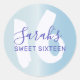 Sticker Rond Cool Sweet 16 Blue Metallic Anniversaire