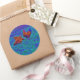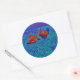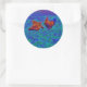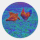 Sticker Rond Coq et poules arc-en-ciel, bleu électrique