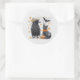 Sticker Rond Corbeau et chat Halloween Automne Crow