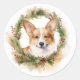 Sticker Rond Corgi Christmas Wreath Festive Pup