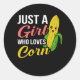 Sticker Rond Corn On the Cob Day Girls Funny Corn Meme Pun