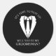 Sticker Rond Costume Mariage noir et Cravate Groomsman Proposit