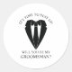 Sticker Rond Costume Mariage noir et Cravate Groomsman Proposit