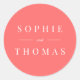 Cet autocollant mariage présente les noms du couple mariage en blanc contre une couleur arrière - plan modifiable ; pour passer du corail à une couleur de votre choix, cliquez sur le bouton personnaliser. Personnalisez-le en remplaçant le texte de l'espace réservé. Pour plus d'options comme changer la police, sa taille et l'espacement entre les lettres cliquez sur le bouton "Personnaliser". *Veuillez noter que le filigrane Zazzle qui apparaît dans l'aperçu du zoom n'apparaîtra PAS sur le produit imprimé final. © Bois de rose et agrumes