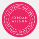Autocollant rond d'adresse de retour moderne avec une double bordure blanche ronde pour votre adresse entre et nom au centre qui est facile à personnaliser tout contre une couleur arrière - plan qui est modifiable (cliquez sur personnaliser). Maintenant, vous n'avez plus jamais à écrire votre adresse. Idéal pour envoyer des lettres / cartes / invitations. Personnalisez-le en remplaçant le texte de l'espace réservé par votre nom et votre adresse. Pour plus d'options comme changer la couleur de l'arrière - plan, la police, sa taille, l'espacement entre les lettres et pour développer ou contracter du texte courbe cliquez sur le bouton "Personnaliser". *Veuillez noter que le filigrane Zazzle qui apparaît dans l'aperçu du zoom n'apparaîtra PAS sur le produit imprimé final. © Bois de rose et agrumes