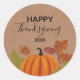 Autocollant "Bon thanksgiving" citrouille et feuille.