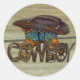 Cet autocollant rond classique est composé de cowboy en bois de campagne conçu par deluxephotos.