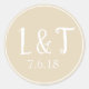 Simples initiales de couple beige sable et date mariage en autocollants blancs.