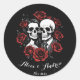 Sticker Rond Couple crâne gothique avec nom personnalisé de ros