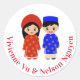 Sticker Rond Couple Mariage traditionnel vietnamien Ao Dai