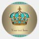 Sticker Rond Couronne bleu et or turquoise