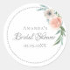Un autocollant tendance, simple et élégant pour une baby shower. Décoré avec une simple couronne à l'aquarelle de roses rose blush avec feuillage d'olivier vert. Fond blanc élégant. Modèles pour le nom de la mariée et une date. Avec le texte : Bridal Shower écrit avec un style de lettrage manuscrit. Lettres de couleur grise.