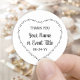 Autocollant rond personnalisé pour couples pour mariage, fiançailles, enterrement de vie de jeune fille, anniversaire ou juste pour le plaisir. Typographie moderne et élégante avec les noms au centre d'une couronne de fleurs et de vignes verdoyantes dans un style d'art folklorique rustique et élégant. Tout le texte peut être personnalisé. L'illustration de cœur tendance s'inspire de la broderie vintage, de la Saint-Valentin rétro et du style d'art de tatouage simple. Parfait pour les invitations, le scrapbooking, les travaux manuels, les cartes de vacances, les notes de remerciement, ou comme idée de cadeau unique et de bon goût pour un mariage, des fiançailles, un enterrement de vie de jeune fille ou un anniversaire.