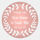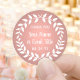 Ajoutez une touche finale personnalisée aux cadeaux de fête et aux mots de remerciement avec des autocollants ronds personnalisés en forme de couronne de laurier. Tout le texte de ce modèle est simple à personnaliser pour n'importe quelle occasion, comme un mariage, une fête de fiançailles, une remise de diplôme, une fête d'anniversaire, un anniversaire de mariage ou une retraite. Modifiez ou supprimez n'importe quel texte pour créer des sceaux d'enveloppe pour les invitations, les faire-part ou les "save the date". Le design botanique moderne rose et blanc présente une couronne de laurier blanche sur un fond en faux or rose, une calligraphie script rustique et une typographie classique élégante. Veuillez noter que l'or rose est une couleur imprimée, et non une feuille métallique. Ces étiquettes rondes élégantes ajoutent une touche unique et personnalisée à la