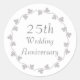 Autocollants ronds à utiliser comme autocollants d'enveloppe, ou sur les sacs de faveur, l'emballage cadeau et plus encore pour une célébration du 25e anniversaire de mariage. Les autocollants comprennent un dessin de couronne de lierre de couleur argentée avec lettrage stylisé de couleur argent. Sélectionnez votre taille d'autocollant.