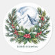 Sticker Rond Couronne de mariage de pin enneigé d'hiver