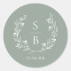 Autocollant de couronne de monogramme botanique vert sauge élégant pour mariage.