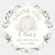Autocollant rond élégant sur le thème de l'automne avec une illustration d'une citrouille blanche et une couronne de verdure aquarelle dans des tons de sauge et d'or. Articles assortis disponibles dans notre boutique !