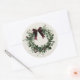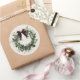 Autocollant rond classique Couronne de Noël aquarelle Cadeaux de fête