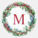 Sticker Rond Couronne de Noël élégante à monogramme rouge