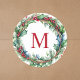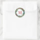 Sticker Rond Couronne de Noël élégante à monogramme rouge initi