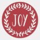 Cet autocollant festif rouge et blanc présente le mot "Joie" écrit à la main, entouré d'une jolie couronne de Noël. Parfait pour sceller une enveloppe ou orner un emballage cadeau.