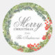 Autocollant Joyeux Noël personnalisé simple, moderne, rustique rouge et vert avec branches de houx et feuillage.