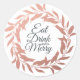 Élégante étiquette de Noël ou sceau d'enveloppe moderne en couronne de rose en or métallisé avec le texte "Manger, boire et être joyeux" en calligraphie chic noir foncé. Parfait pour ajouter une touche festive à toutes vos enveloppes de Noël et vos sacs et cadeaux de Noël. Des produits assortis sont disponibles dans notre magasin. Si vous avez besoin d'aide, n'hésitez pas à nous contacter à happydolphinstudio@outlook.com. Conçu exclusivement pour vous par Happy Dolphin Studio.