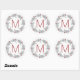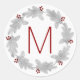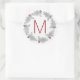Sticker Rond Couronne de vacances Monogramme Argent et pin roug