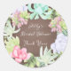Ajoutez une touche de charme du désert à vos faveurs avec un design qui capture la beauté moderne des botaniques du désert, ce qui en fait l'idéal pour une suite de baby shower chic et mémorable. Cet autocollant de remerciement présente une charmante couronne aquarelle, méticuleusement réalisée avec des plantes succulentes dans un éventail de teintes vert pâle, vert foncé riche et rose délicat. Ces plantes succulentes vibrantes ressortent magnifiquement sur un fond brun doux, créant une palette sophistiquée et harmonieuse. Modifiez facilement les détails à votre guise et, si vous le souhaitez, changez le style, la taille, la couleur et l'emplacement de la police.