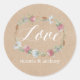 Ces autocollants sont parfaits pour tout couple qui planifie une célébration romantique de mariage campagnard. La conception comporte une couronne fleur sauvage tendance sur un arrière - plan à effet kraft avec une formulation coordonnée couleur. Le design simple peut être personnalisé pour convenir à votre événement spécial et sera la faveur parfaite pour toute soirée à thème floral chic, y compris : douches nuptiales, fiançailles, wedding showers, fêtes d'anniversaire et bien plus encore.