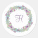 Autocollant rond personnalisé avec monogramme couronne florale
