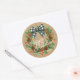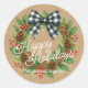 Sticker Rond Couronne rustique de houx avec noeud à carreaux bl