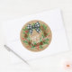 Sticker Rond Couronne rustique de houx avec nœud à carreaux bla