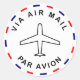 Inspiré par les enveloppes de l'époque dorée. Des rayures rouge-blanc-bleu forment le cercle entourant et, au milieu, il y a un symbole d'avion avec des textes "VIA AIR MAIL" et "PAR AVION" autour.