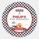 Course de voitures de course Deux garçons rapides Fête d'anniversaire Autocollant rond classique. Découvrez la collection pour plus d'articles assortis !