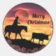 Personnalisez ce chevalier de Noël occidental unique "Un de genre" ! Avec une silhouette d'un cow-boy chevauchant un cheval élevant un maigre-volant pendant une belle nuit orangée au clair de lune !