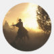 Sticker Rond Cowboy avec Lasso au coucher du soleil